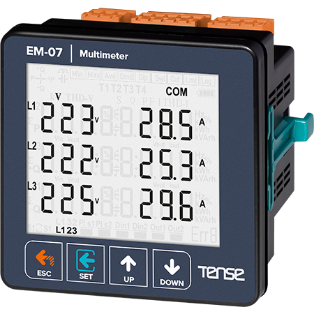 Multimeters are designed to measure electrical values such as voltage, current, frequency, apparent power, and minimum, average, maximum and demand values of the load or loads in the system to which they are connected.