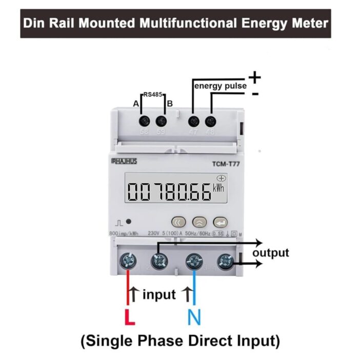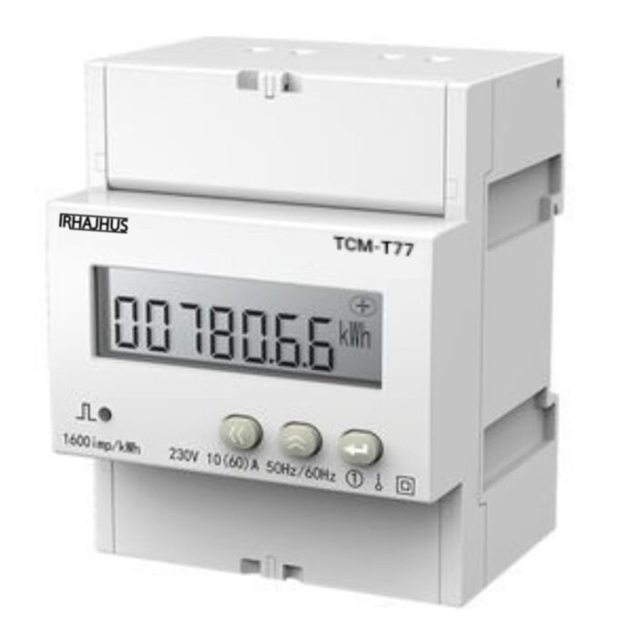 TCM-T77 Dual Source Singel Phase Energy meter Direct operated up to 100A. With communication and pulses output. Easy to access on software through communication.